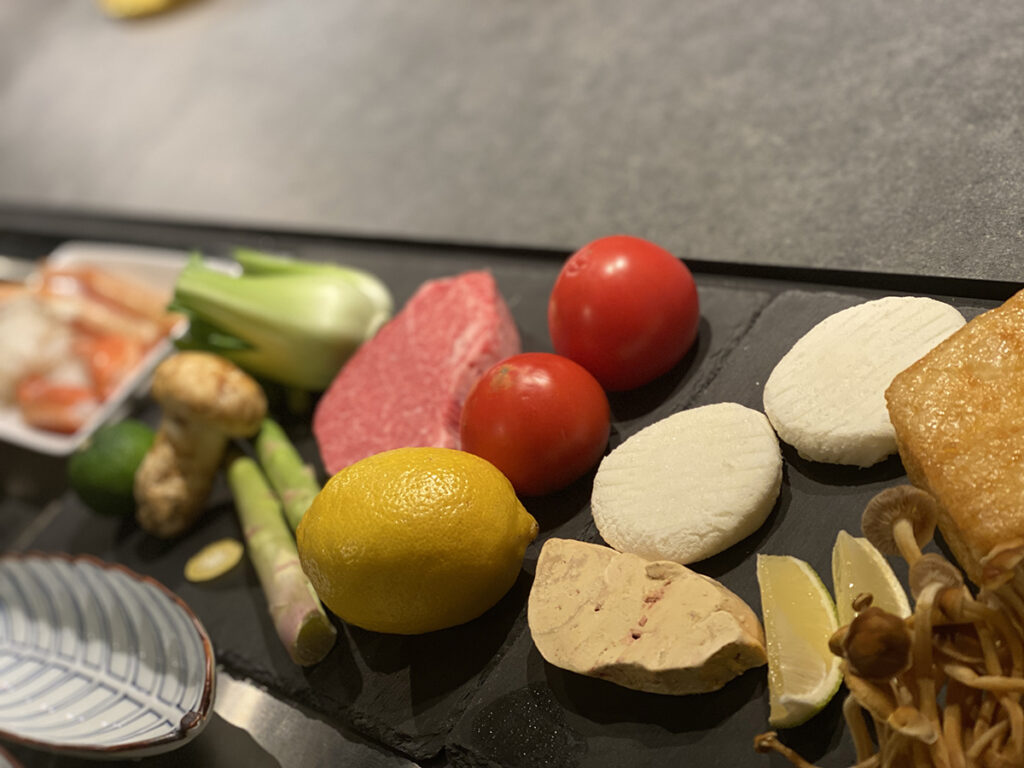 目の前で焼き上げる和牛ステーキとフレンチのテクニックを使った前菜と魚料理デザートには自慢のジェラートをお楽しみいただけます